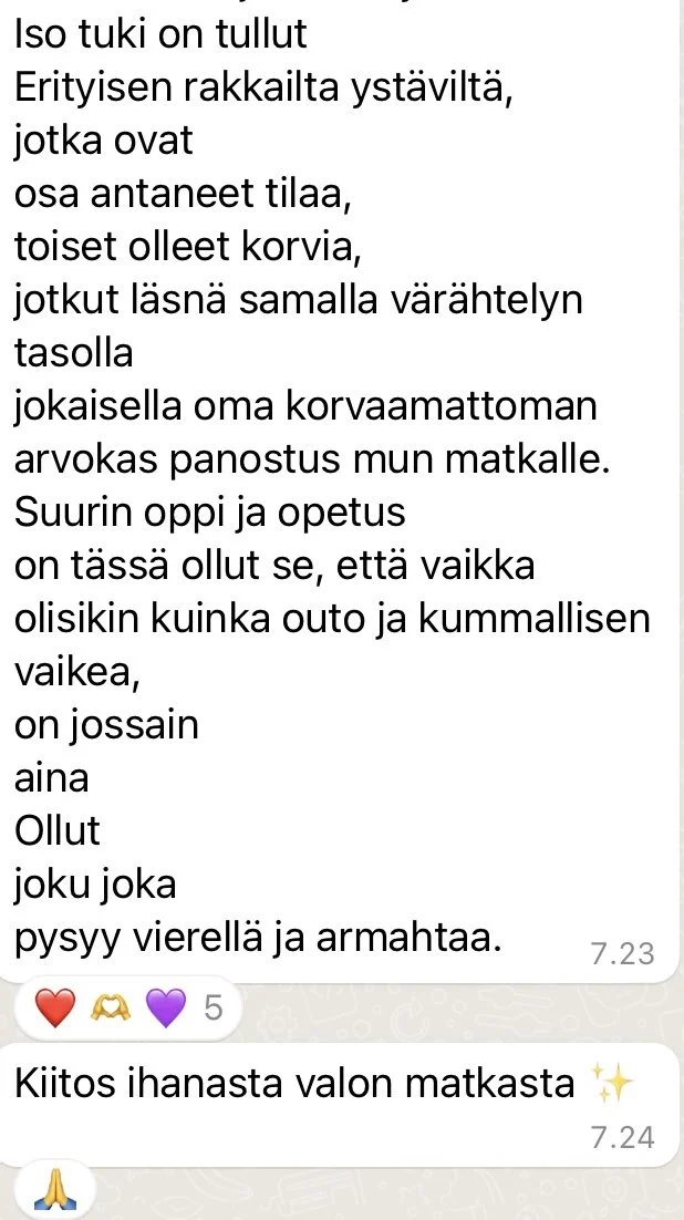 Luova Naistenpiiri on ennen kaikkea rento ja luottamuksellinen tila voimaantumiselle, uusiutumiselle ja latautumiselle, sekä autenttiselle kohtaamiselle tässä hetkessä.